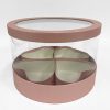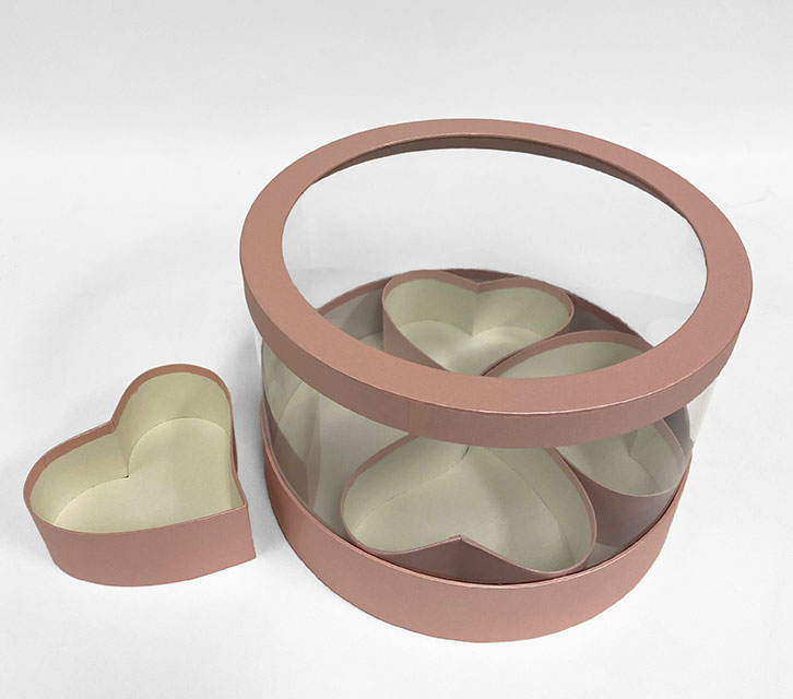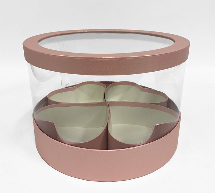 | FEATURE: | PVC transparent round shape flower box. Clear lid and 4 hearts are removable . Waterproof with laminated surface internal and external. However, It is not design to hold water without a liner. |